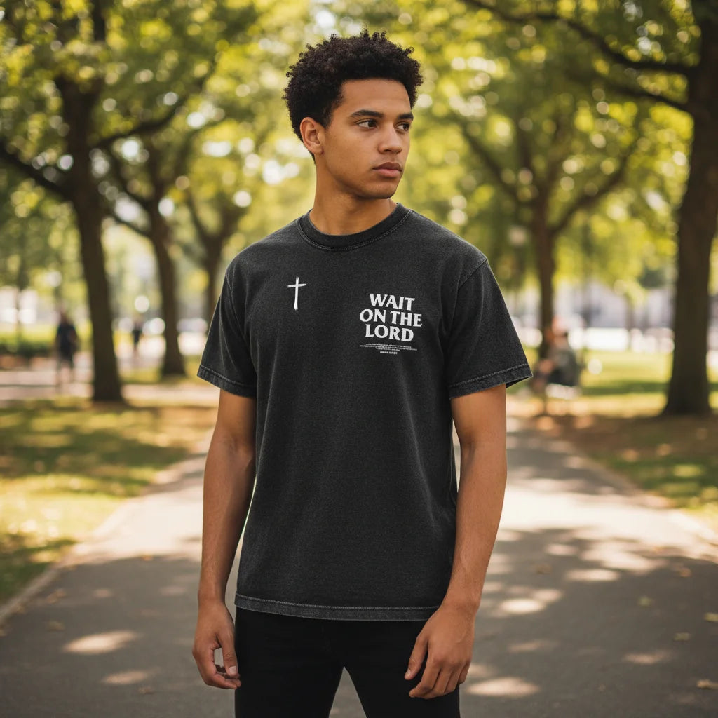 The subtle cross on the front and the profound message 'WAIT ON THE LORD' on the back are intentional choices. They offer a grounded way to carry your devotion, speaking to your spirit without overt declarations. It's a timeless expression of faith, inviting reflection.