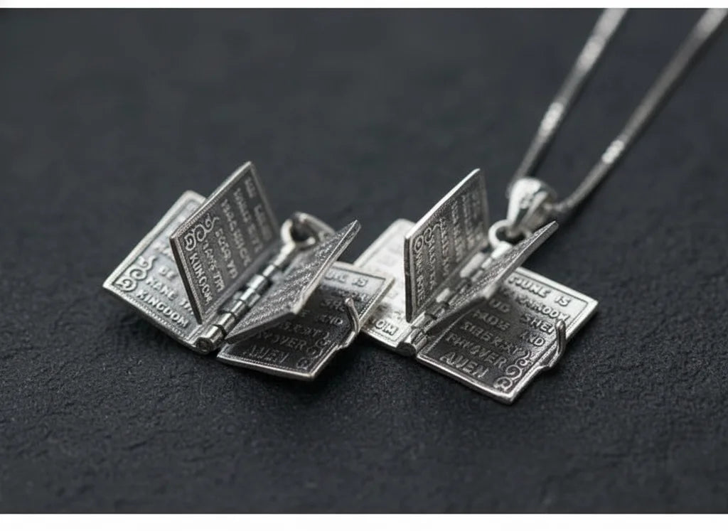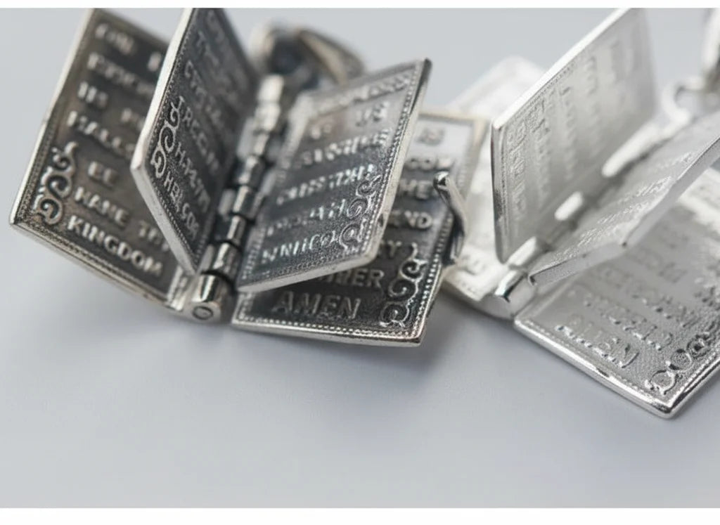 The 'open book' is a profound metaphor for your personal spiritual journey—a testament to open hearts, shared wisdom, and the unfolding chapters of faith. It's a sacred connection, a story etched in silver, waiting for your unique interpretation and deep reflection.