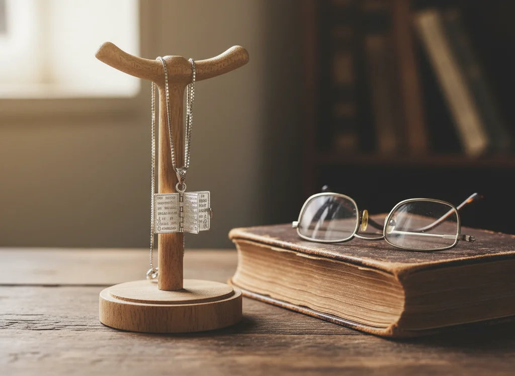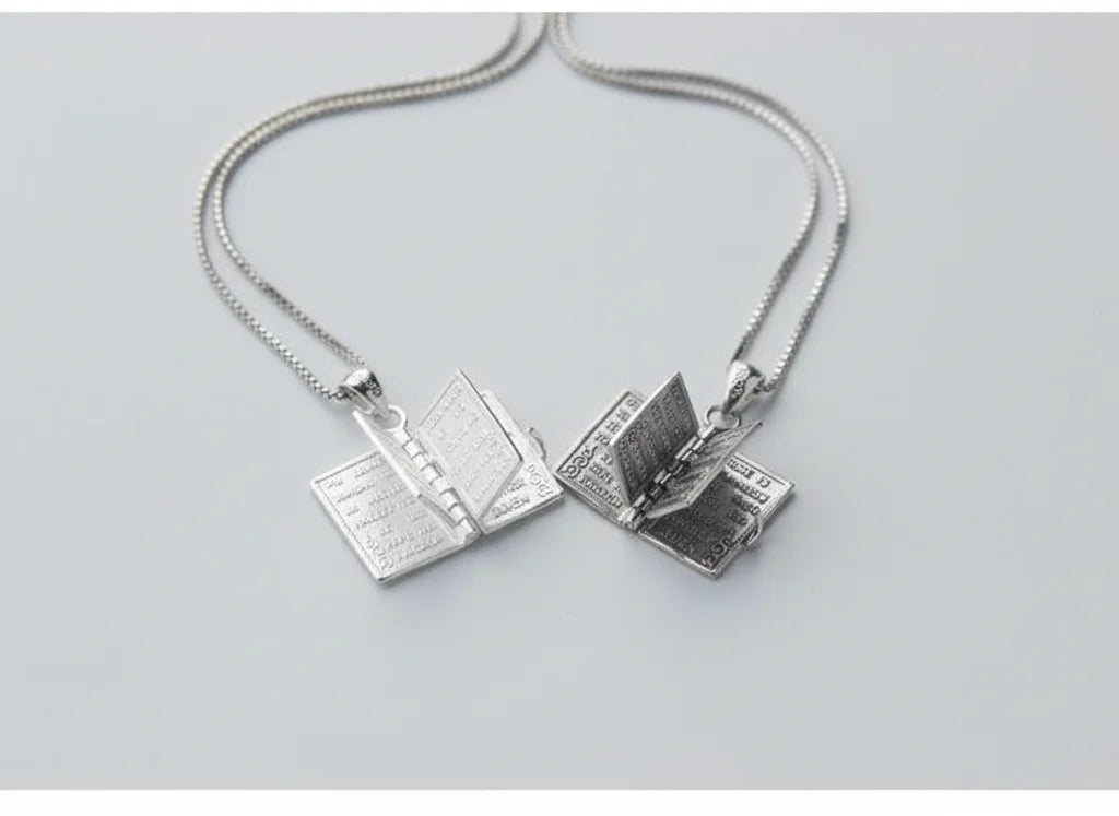 The pendant's unique open book design allows your faith to be a personal narrative. It's a subtle, elegant symbol, a constant reminder of your inner light and connection, worn close to your heart as a cherished anchor.